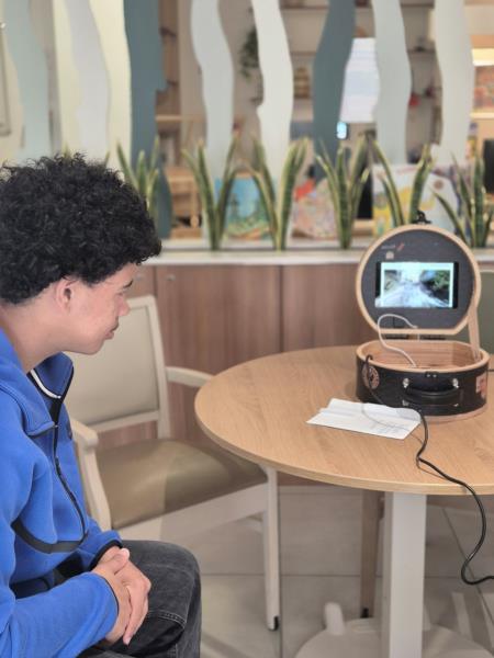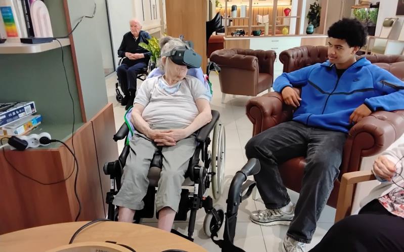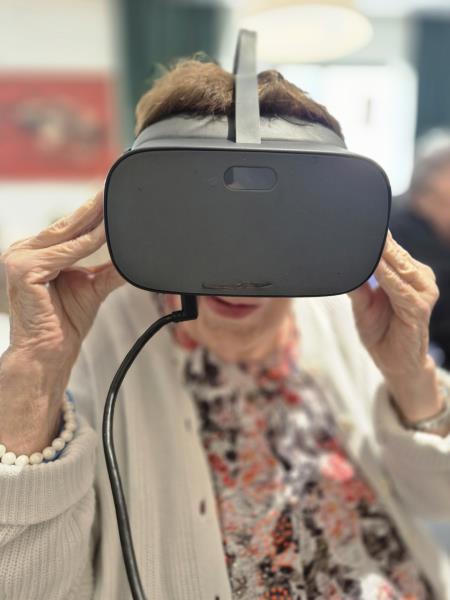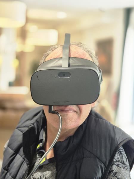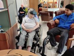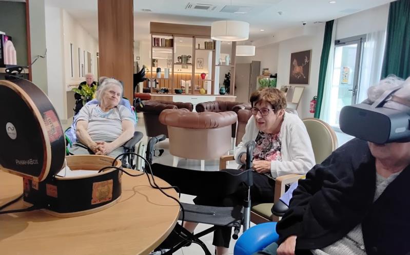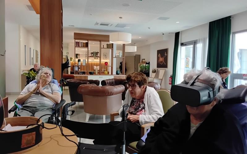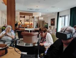 Aujourd’hui, nous avons proposé aux résidents une expérience immersive grâce à un casque de réalité virtuelle. Ils ont pu voyager, découvrir des monuments, sauter en parachute ou encore se promener en bord de mer.